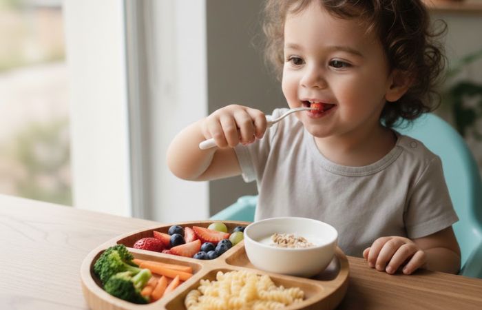 A colorful and balanced plate ensures children receive essential vitamins and minerals.